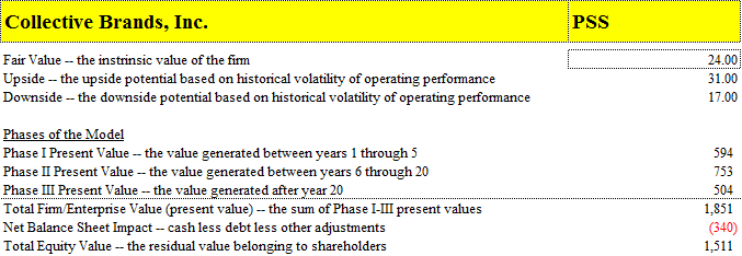 We have initiated coverage of Collective Brands (PSS) at a fair value of $24 per share based on our discounted cash-flow process. The company reported a miserable first quarter, and the stock has languished since, creating an excellent buying opportunity for long-term investors, in our opinion. Legendary investor Peter Lynch made quite a bit of money betting on turnarounds, and we think Collective Brands is the quintessential turnaround candidate. We think the stock is unfairly beaten down, providing considerable upside to patient investors. We are adding the firm to our Best Ideas List.